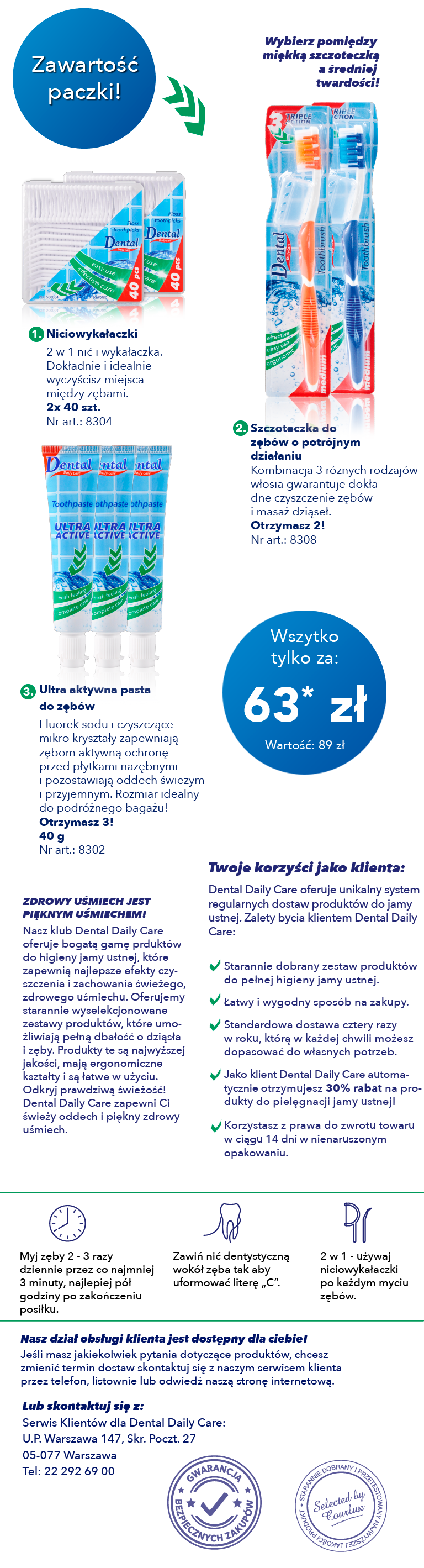 • Jako klient Dental Daily Care automatycznie otrzymujesz rabat na produkty do pielęgnacji jamy ustnej!