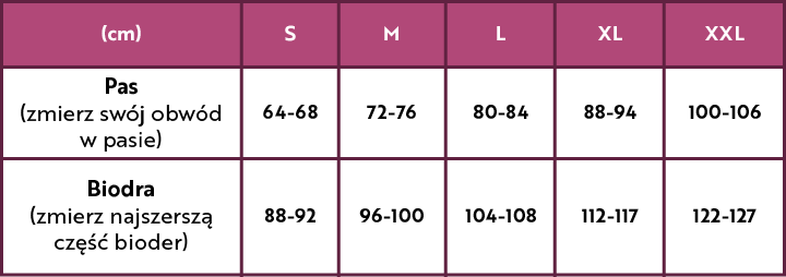 * Tabela rozmiarów ubrań